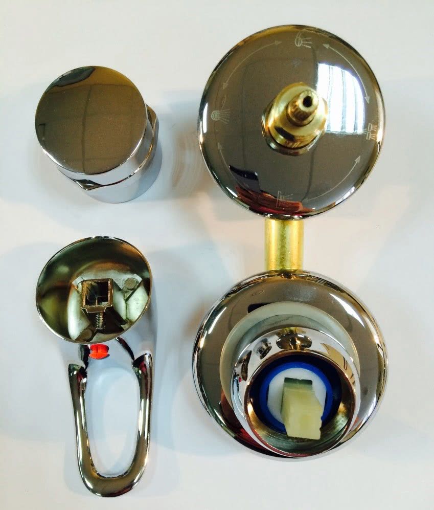 Очень часто сталкиваюсь с такой проблемой на работе, где на кранах и смесителях стоят пластиковые маховики. Вот такие —