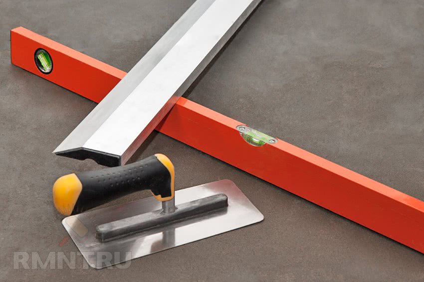 - 4. Поверхность осматривается, при наличии пустот в эти места добавляется еще небольшое количество раствора. Еще раз выполняется выравнивание. Основная задача – получить идеально ровную плоскость с необходимым углом.