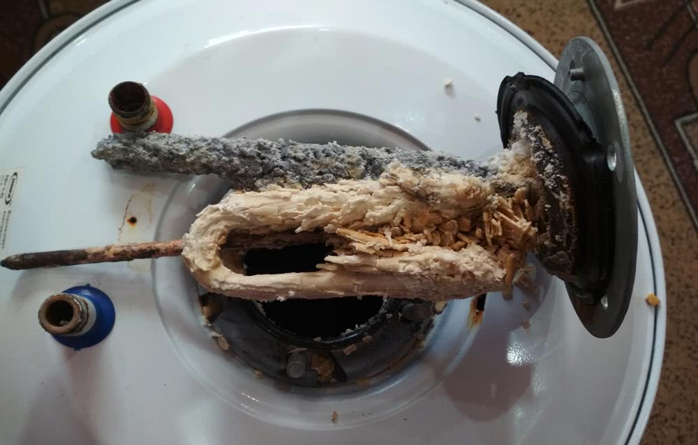 У известковых отложений и металла разные коэффициенты расширения. Поэтому нагревательный элемент изнашивается из-за постоянных циклов включения и выключения. Также накипь мешает эффективно отдавать тепло воде, снижая полезную мощность водонагреватель.