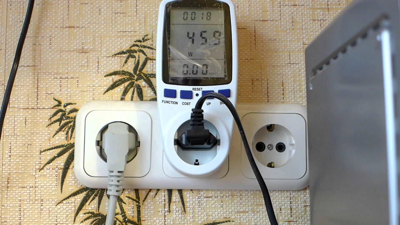 - Ваттметром: это измеритель, который представляет собой «переходник» между розеткой и прибором. При включении на индикаторе появится точное значение.