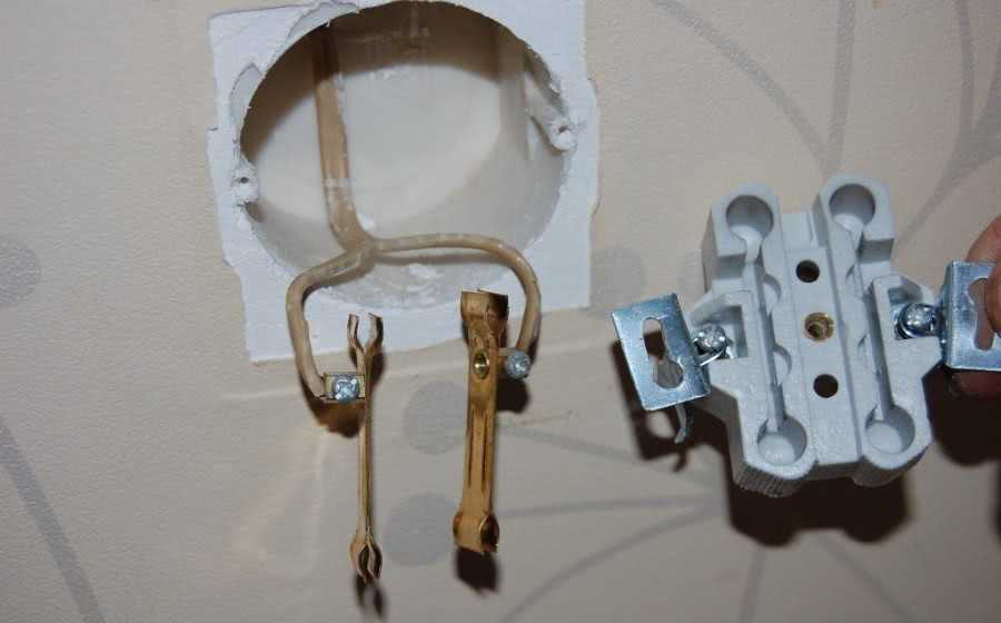Подсоединив жилы к клеммам, провод в точке разветвления желательно прикрепить к корпусу розетки – чтобы его нельзя было выдернуть. Способ крепления может быть различным в зависимости от конструкции розетки. Можно использовать лейкопластырь или пластинку из металла с отверстиями по краям. Некоторые розетки имеют в своей комплектации специальный хомутик для этого.
