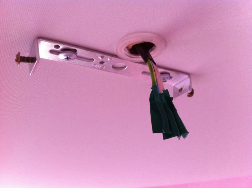 Далее подключенные к светильнику провода отсоединяют и обматывают их оголенные концы изолентой. Это касается и провода заземления, если он есть (обычно имеет изоляцию желто-зеленого цвета)