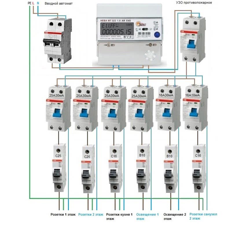 Подключение УЗО и автоматов в электрощите — основные схемы