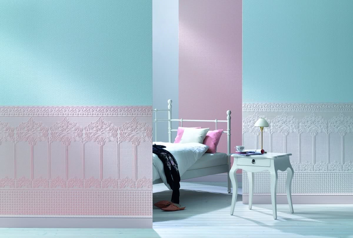 Еще один необычный вариант – покрасить сами стены. При этом цвет будет интересно просвечивать через обои. Здесь главное подобрать более тонкие полотна.