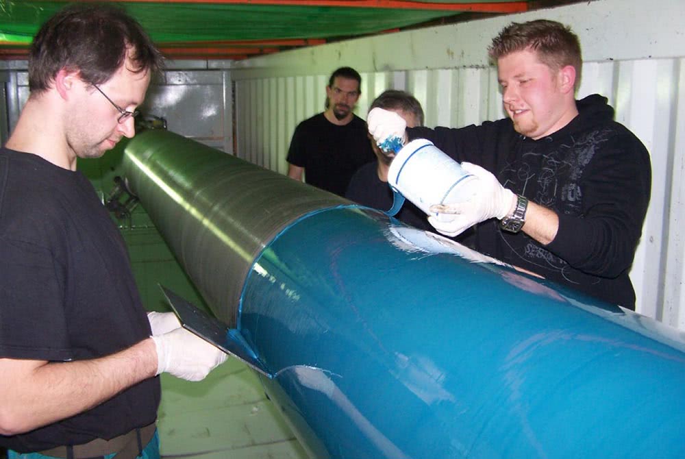 Одно из ценных качеств эпоксидки для металла – высокая стойкость к воздействию нефтепродуктов. Поэтому заплатка, наложенная с помощью данной смеси, будет служить очень долгое время, сохраняя полную герметичность. Такие свойства, а также и хорошие гидроизолирующие показатели позволяют использовать ее для защиты трубопроводов (как наземных, так и подземных).