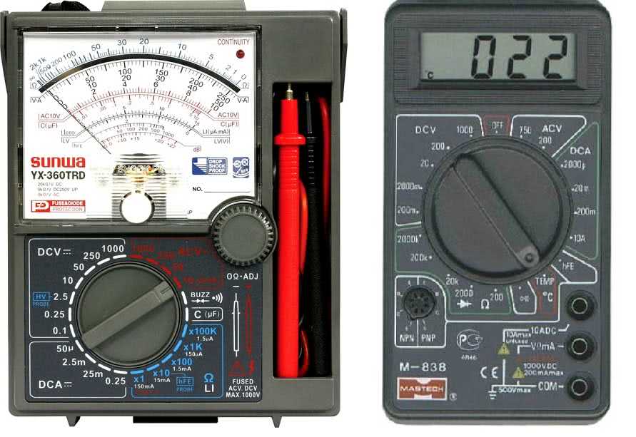 Также мультиметры бывают двух типов: со стрелочным и цифровым индикатором. Более популярны модели с цифровой индикацией — информацию считывать проще.