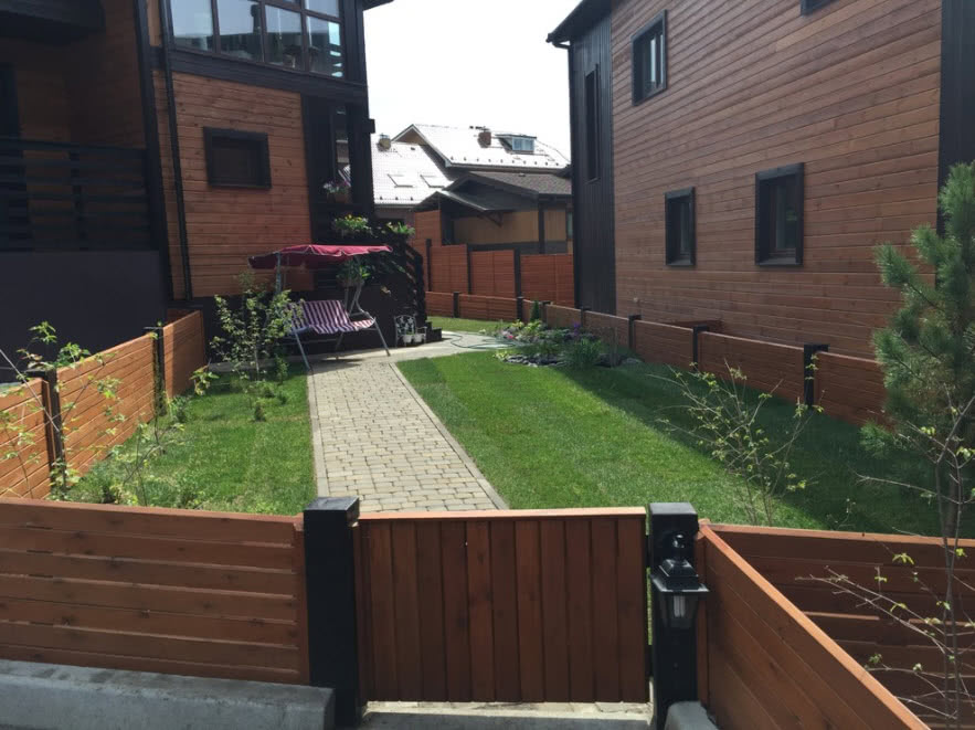 Также оптимальным вариантом будет домик в стиле хай-тек. Актуальной остается и тема с домами-близнецами. На земельном участке ставятся два домика, один из которых является уменьшенной копией второго. Такие дома особенно популярны для тех, кто любит отдыхать большой компанией, ведь можно меньшую часть отдать под гостей, при этом, не стесняя друг друга.