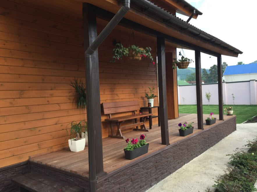 Другой вариант – это когда входу в дом предшествует терраса. В таком случае помещение оборудуют несколькими входами, и крыльцо обустраивают на заднем дворе.