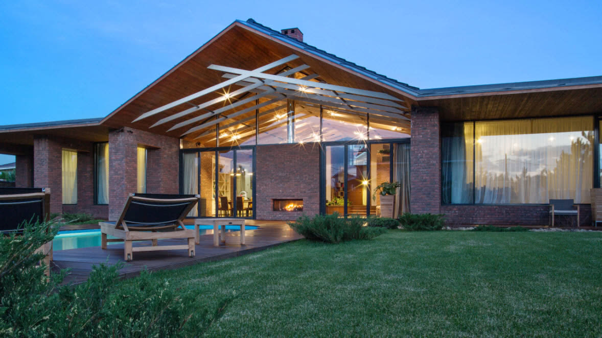 К дому можно пристроить террасу и разместить там открытую кухню и обеденную зону