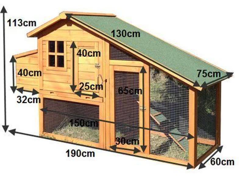 С учетом количества особей большинство курятников имеют следующие параметры: