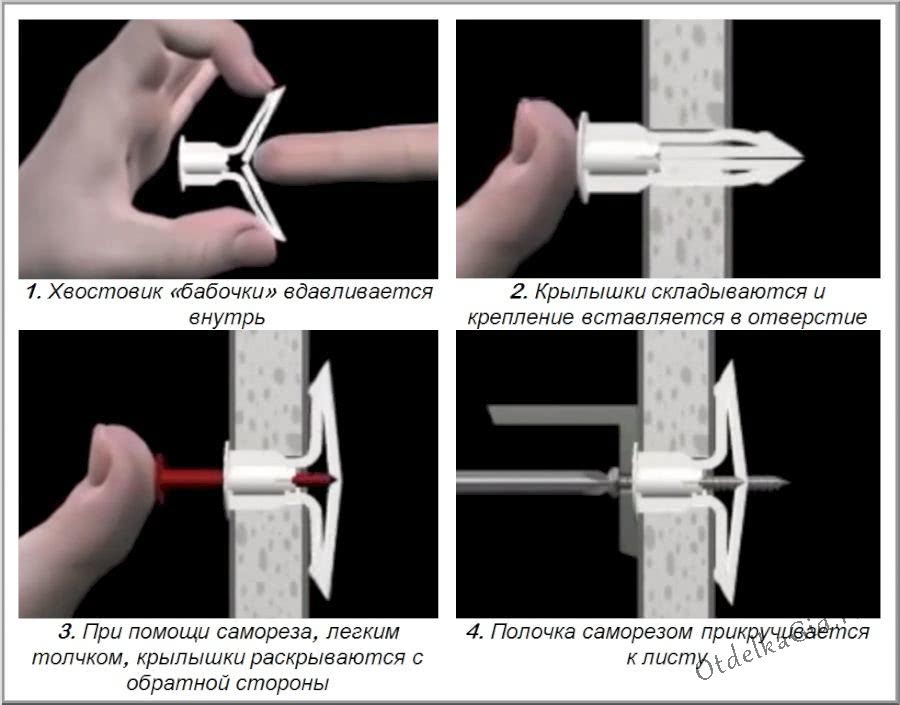Сегодня нередко применяют гипсокартон для отделки. Для этого материала используются анкера «бабочка».