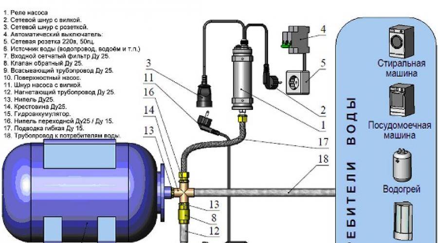 Схема подключения насосной станции к водопроводу