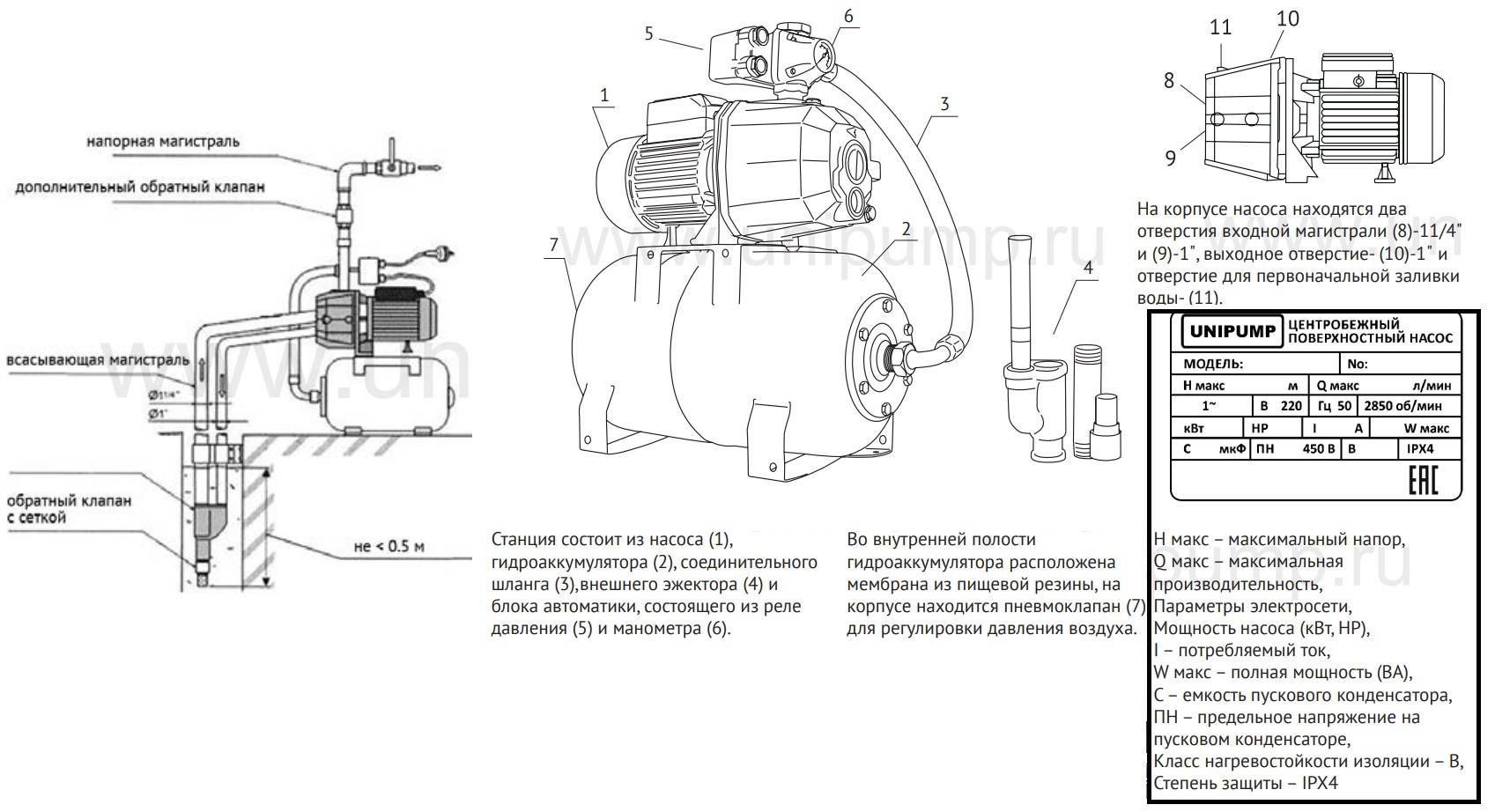 Чаще всего обратный фильтр имеет посадочную резьбу на дюйм. Основные части насосной станции Насос В этом качестве, как правило, используются поверхностные устройства самовсасывающего или центробежного типа. Накопительный бак стыкуют с боковым входом штуцера.