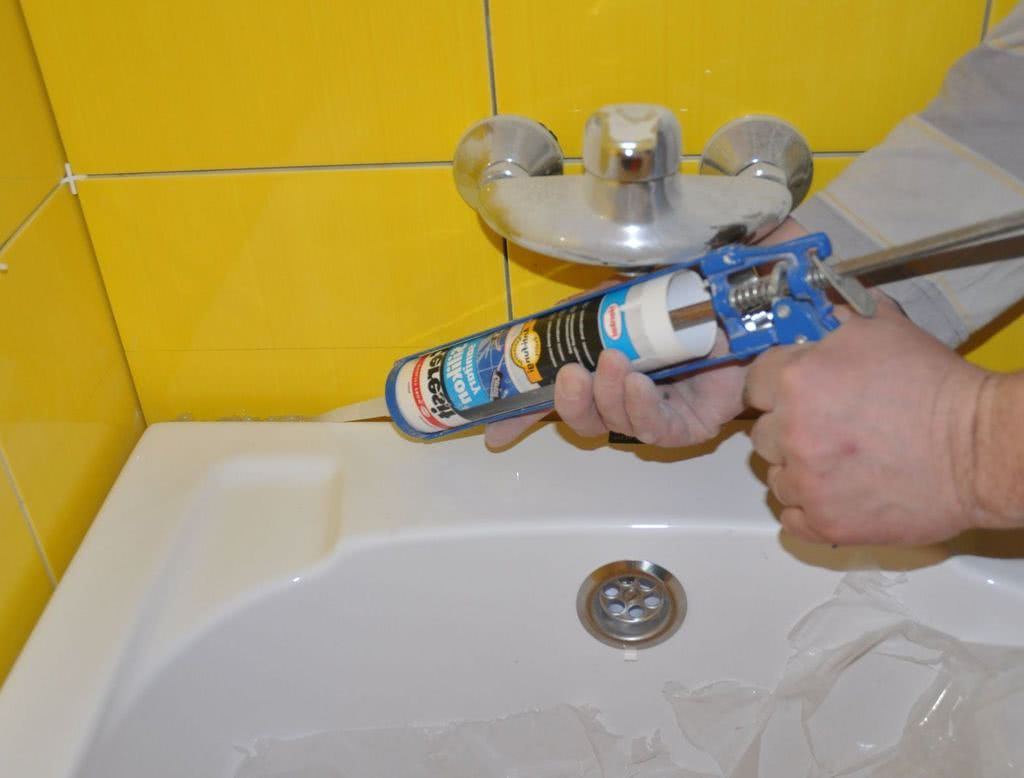 Обратите внимание! Перед заполнением стыка герметиком, ванну и плитку на стене следует заклеить малярным скотчем, так как удалить герметик позже будет сложнее.