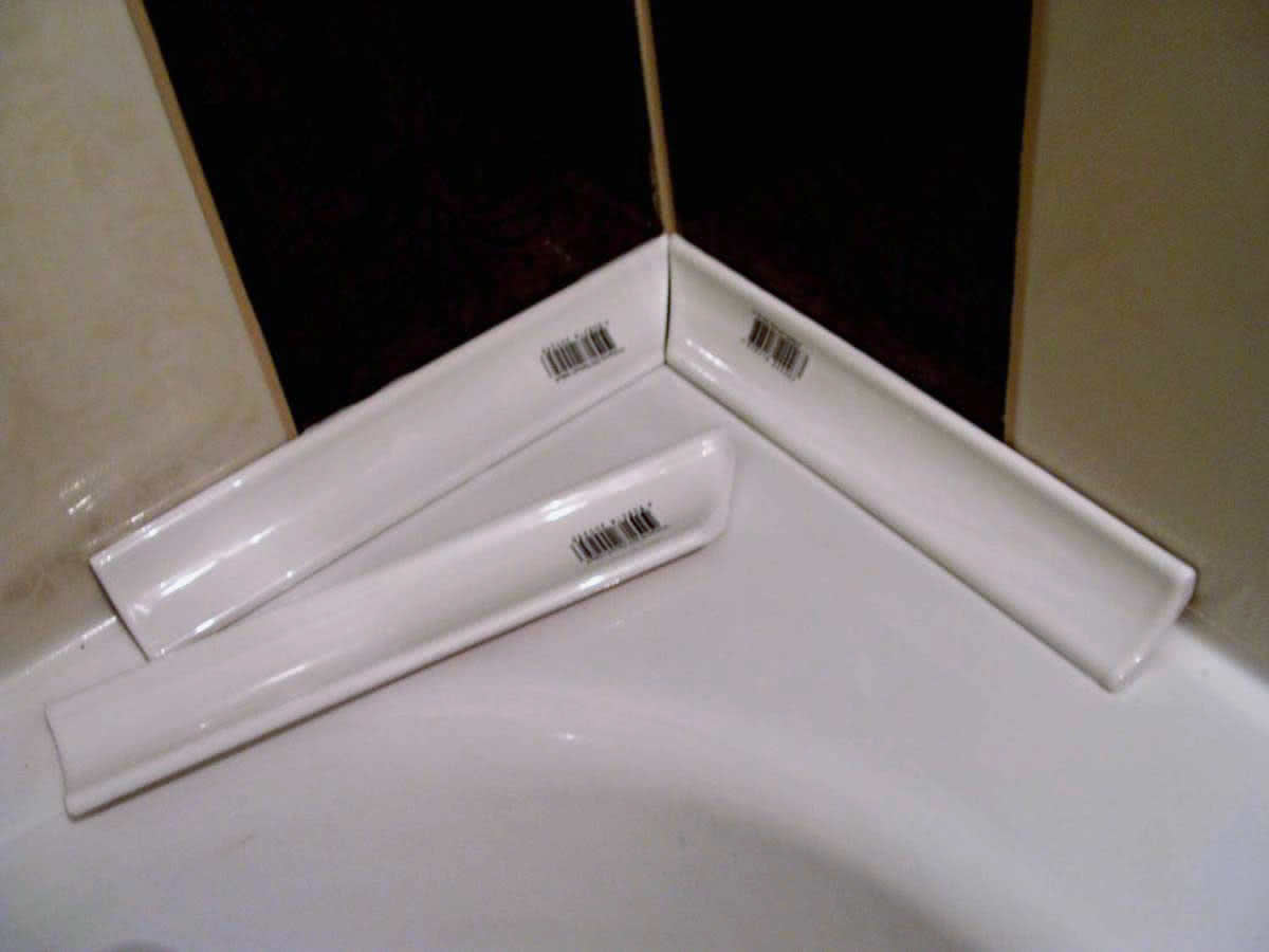 - Из-за дефектов облицовки и межплиточных швов прилегание окантовки не будет идеальным. Заделайте малейшие щели герметиком, чтобы в них не попала влага или грязь. Для этой цели используется прозрачный или белый состав.