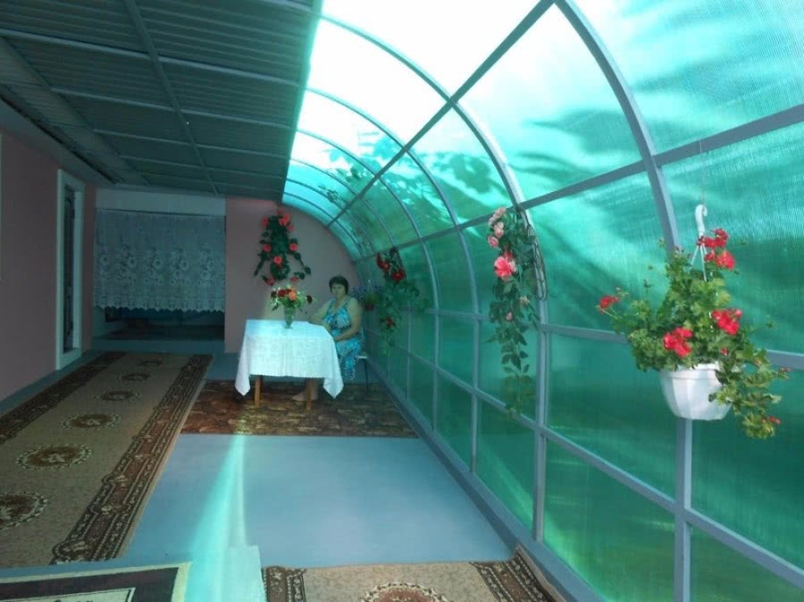 - Высокая светопропускная способность. Внутри пристроенной из поликарбоната веранды будет достаточно естественного освещения, но при этом прямые солнечные потоки рассеиваются, и частично поглощаются УФ лучи.