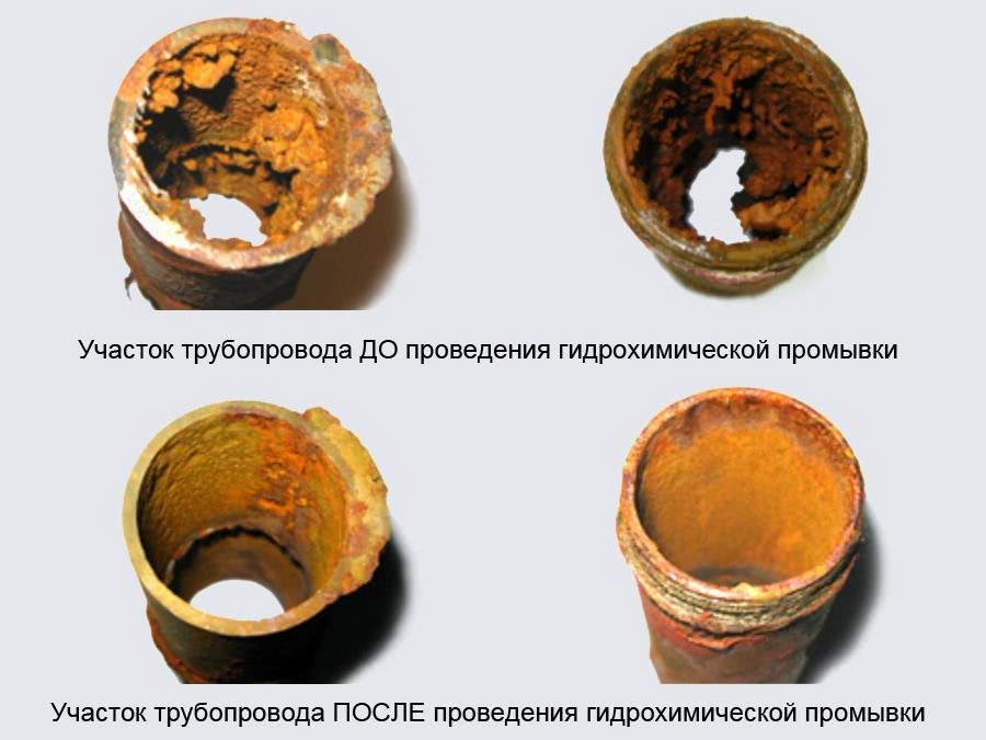 После использования химических составов, трубопроводы надо тщательно промыть. Для этого разогревают котел и пускают по системе горячую воду, которая смоет остатки ржавчины, масляные загрязнения и остатки чистящих препаратов.