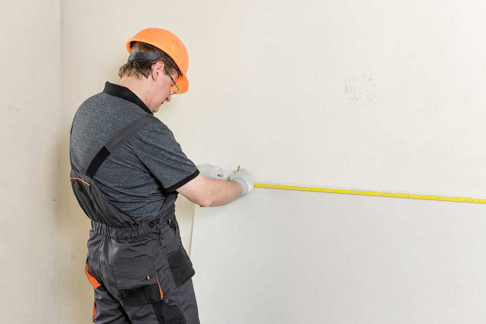 - На черновой стороне гипсокартона сделайте разметку карандашом.