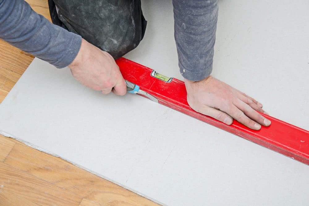 - Резать гипсокартон нужно только на устойчивой и ровной поверхности, иначе материал прогнется, и с ним будет намного сложнее работать.