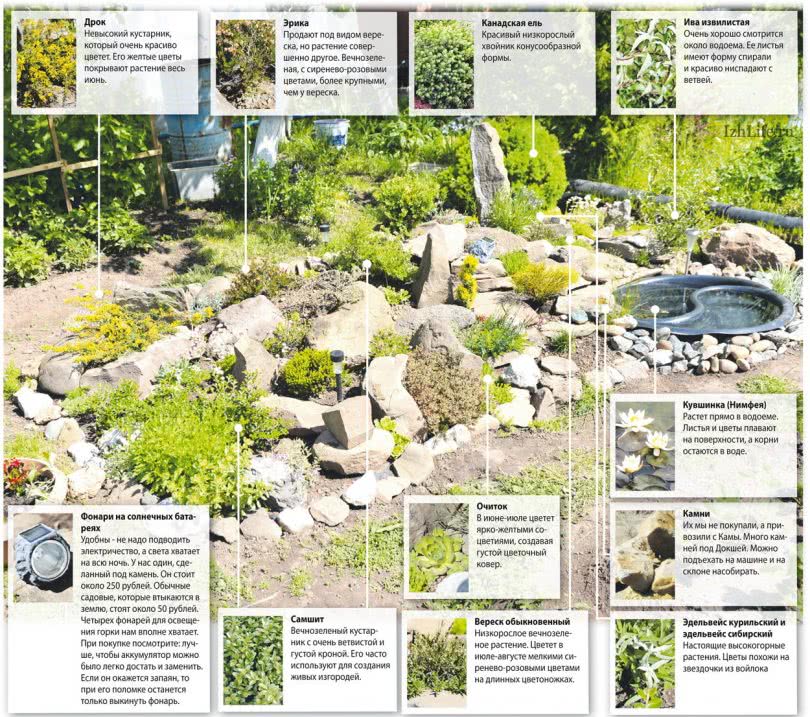 Как сделать и оформить красивую цветочную альпийскую горку: схема, описание, фото