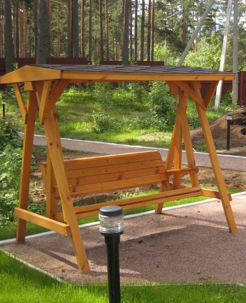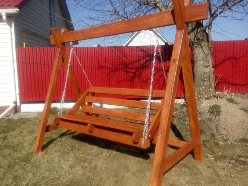 Деревянные качели на опорных стойкахДеревянные качели на опорных стойкахДеревянные качели на опорных стойках