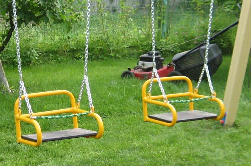 Во-вторых, следует правильно выбирать материал, и всегда ухаживать за ним. Деревянные качели требуется обрабатывать лаком, противогрибковым и противопаразитарным средством. Железо же нуждается в постоянной покраске во избежание появления ржавчины, приводящей к поломке.