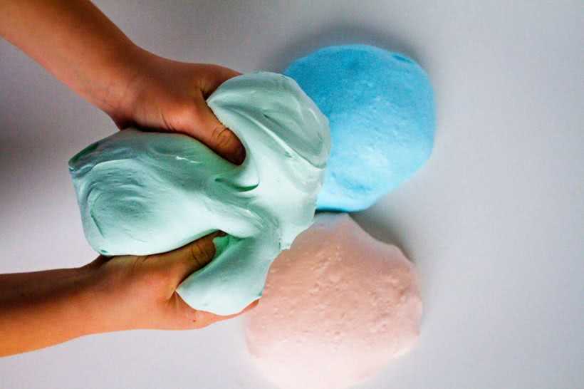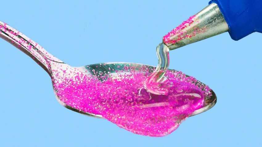 Еще одно замечательное применение клея ПВА, которое точно понравится деткам — это лизун или слайм, как его правильнее будет назвать. Для такой игрушки необходимо следующее: клей ПВА, вода, сода пищевая и краситель любого вида. Можно при желании добавить к лизуну любые детальки типа бусинок, блесток и т.д.