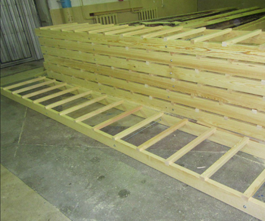 - По чертежу сбиваются доски или фанера для опалубки, с соблюдением угла наклона, не допуская наличия щелей.