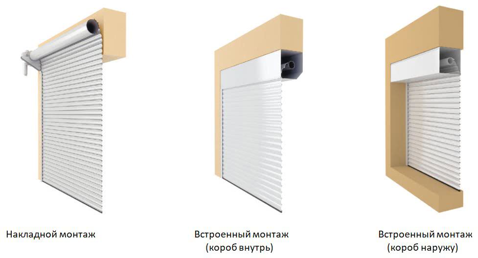 Гаражные ворота этого типа можно устанавливать внутри помещения, снаружи или прямо в проеме (здесь имеется в виду барабан, на который наматываются секции конструкции). В двух первых случаях (накладной монтаж) они собой не изменяют параметров въезда, так как барабан устанавливается с таким расчетом, чтобы в наполненном виде он не заслонял собой верхнюю часть проема. В третьем случае (встроенный монтаж) высота сильно уменьшается за счет габаритов подъемного механизма.