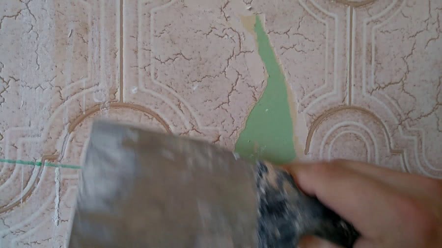 при помощи острого канцелярского ножа надрывается вверху стены кусок обоины;