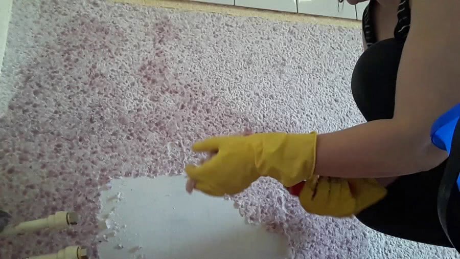 Немного сложнее работать с обычным утюгом. Для этого нужно смочить ветошь водой, прислонить ее к стене и прижать раскаленным устройством. Необходимо подержать утюг несколько секунд, убрать его, а затем быстро ободрать обработанный участок.