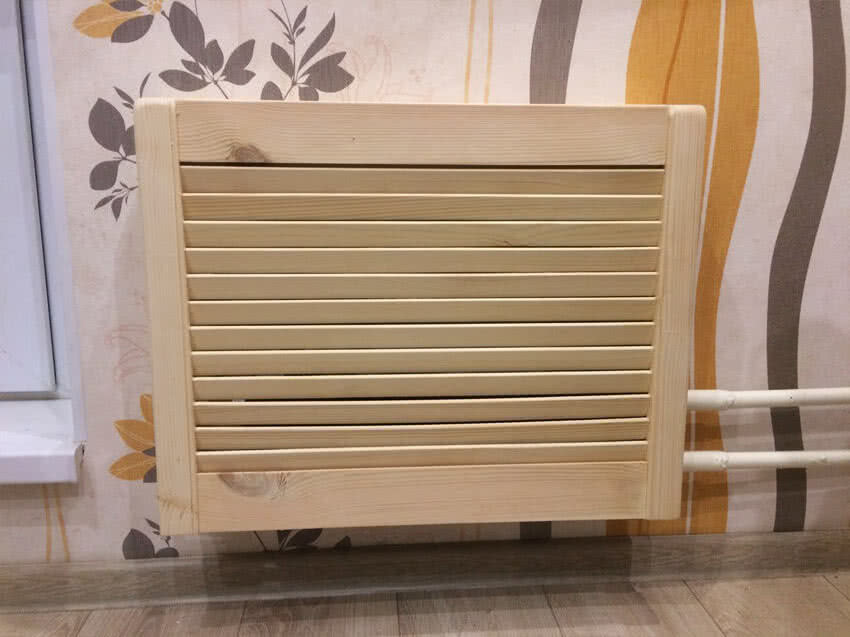 Экран для радиатора отопления отличается тем, что имеет решёточную структуру. Это качество позволяет теплу беспрепятственно попадать в помещение и обогревать его. Такие экраны изготавливаются из разных материалов: