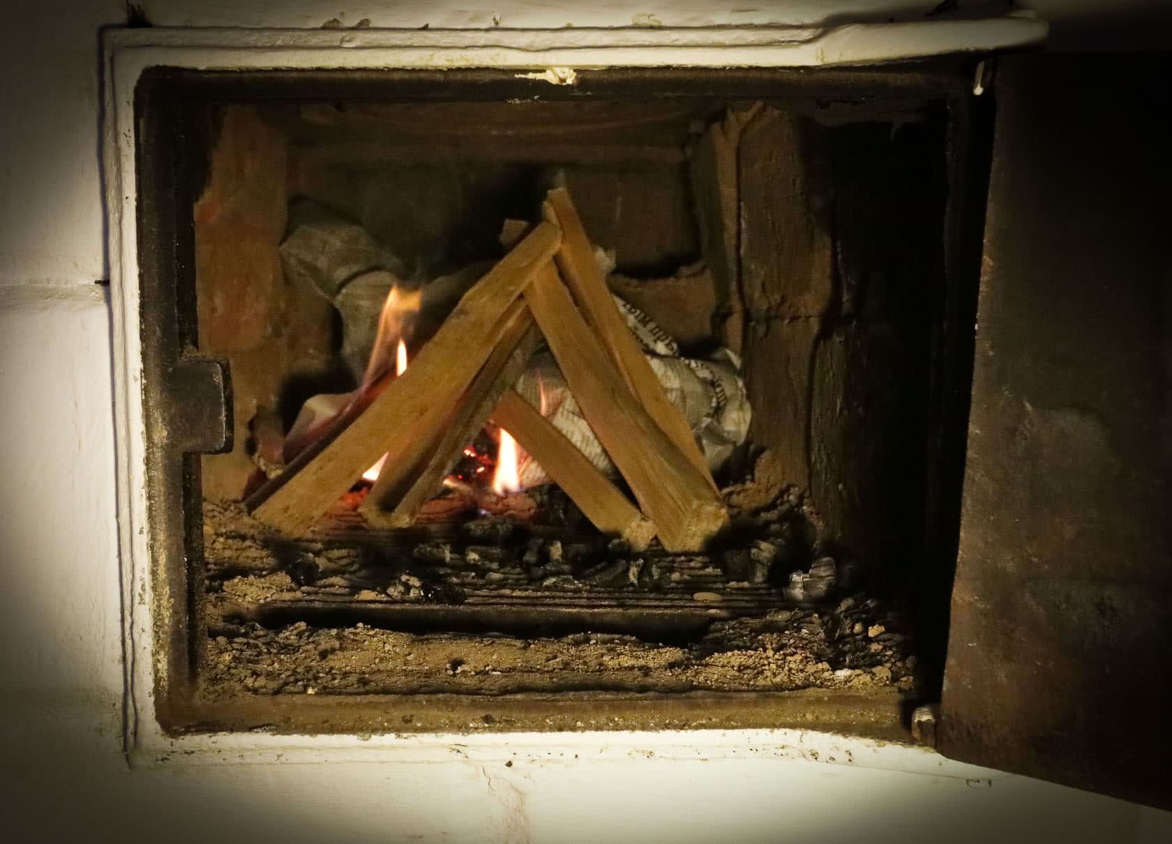 Зажгли и также секунд на 10 прикрываем дверцу топки не полностью.