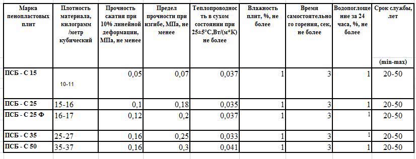 Характеристики пенопласта ПСБ-С 50