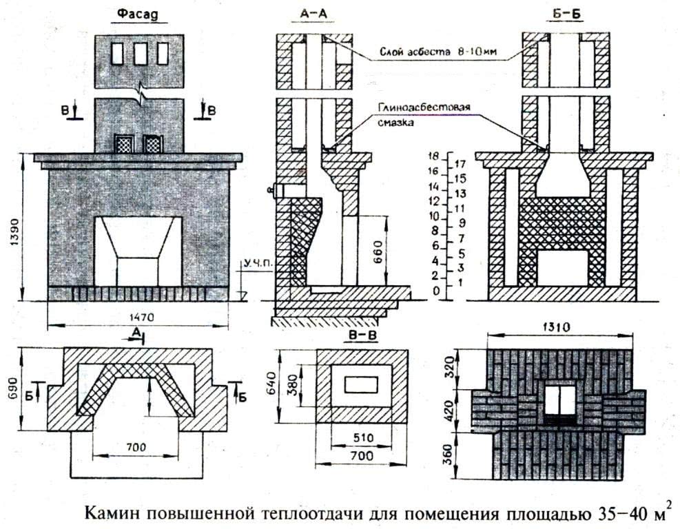 Совет. Готовыми схемами камина из кирпича лучше не пользоваться, так как они составлены примитивно и с ошибками, кроме того, их невозможно подогнать под конкретное помещение. Проще за 30 минут на бумаге выполнить свою.