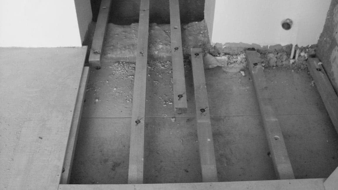 Выравнивание деревянного пола с помощью мокрой стяжки