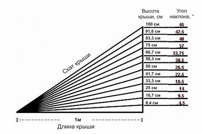 Пропорции соотношения градусов к размерам крышиИсточник obustroeno.com