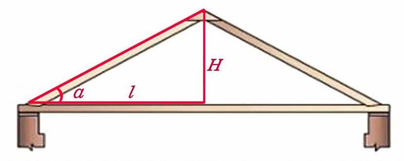 i = Н : L, т. е. угол уклона крыши находят из отношения высоты кровли к заложению.