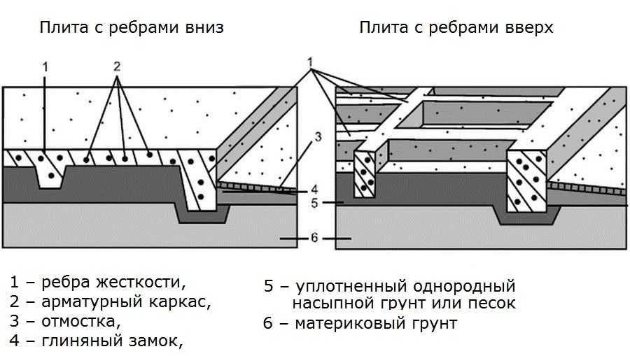 При этом обе части хорошо друг друга дополняют. На практике плита может опираться как на почву с лентой, так и только на ленточное основание. Последний вариант схож с применением плит перекрытия.