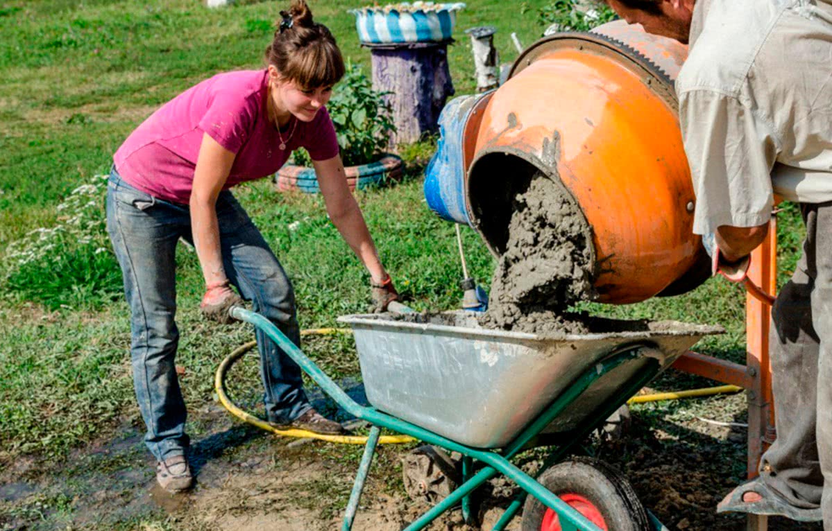 На даче или участке замешивание проводят двумя способами – ручной замес и бетономешалкой. Какой из них использовать, зависит от объемов.
