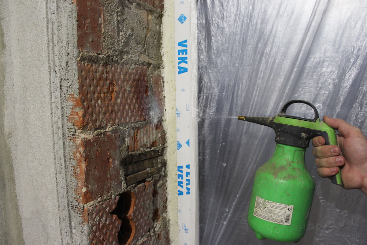 Далее я дополнительно обеспылил и загрунтовал те места оконного проема, куда будет наноситься герметик.