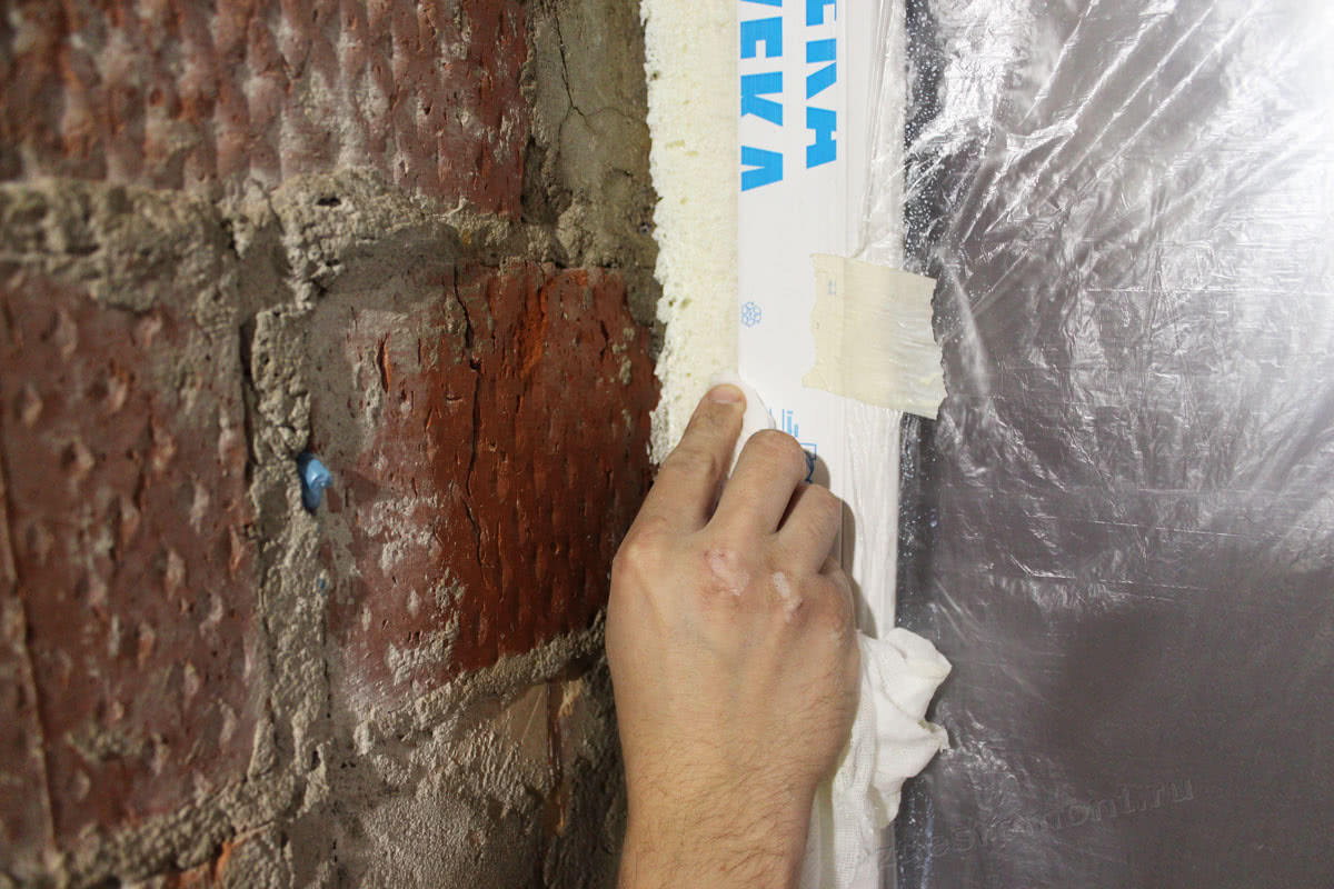 У специального поролона одна сторона имеет клеящий слой. Когда таких материалов в продаже не было, поролон крепился посредством самых мелких гвоздиков. Изделие при правильной эксплуатации может служить в течение 3 лет, но затем происходит деформация. Сверху полосы лучше заклеить скотчем. Весной скотч снимают, а поролон можно оставить на своем месте.