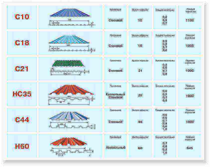Мы рассмотрели самые популярные марки профнастила и составили соответствующую таблицу для того, чтобы читатель смог ориентироваться в функциональном предназначении каждой марки:
