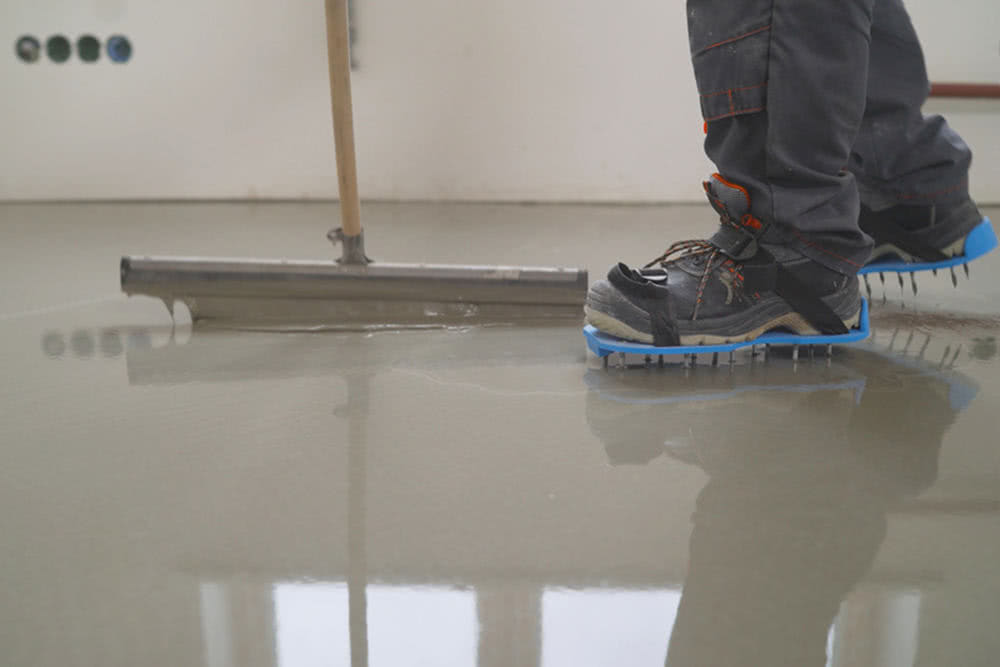 - Покрывают бетонный пол разбавленным водой стеклом для предотвращения образования цементной пыли.