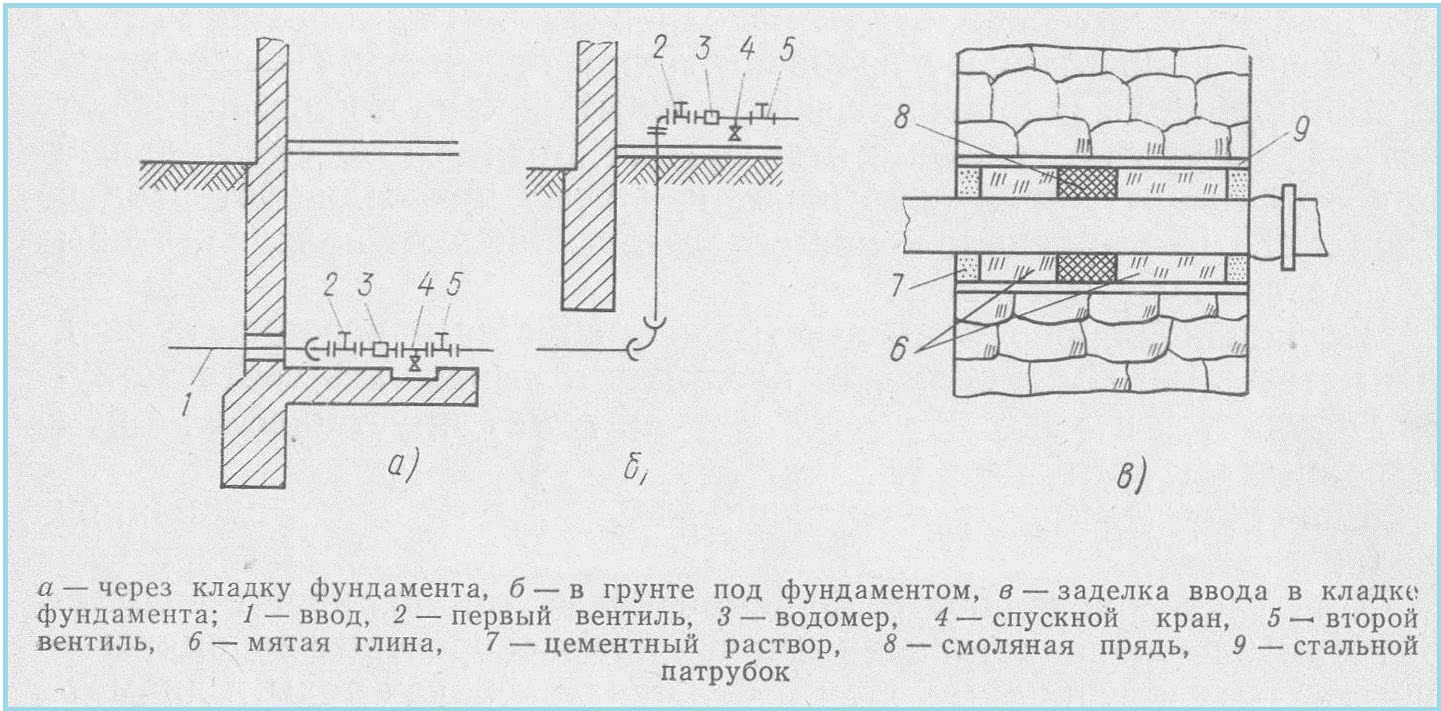 Рис. 9 Схема прокладки ввода трубы в здание