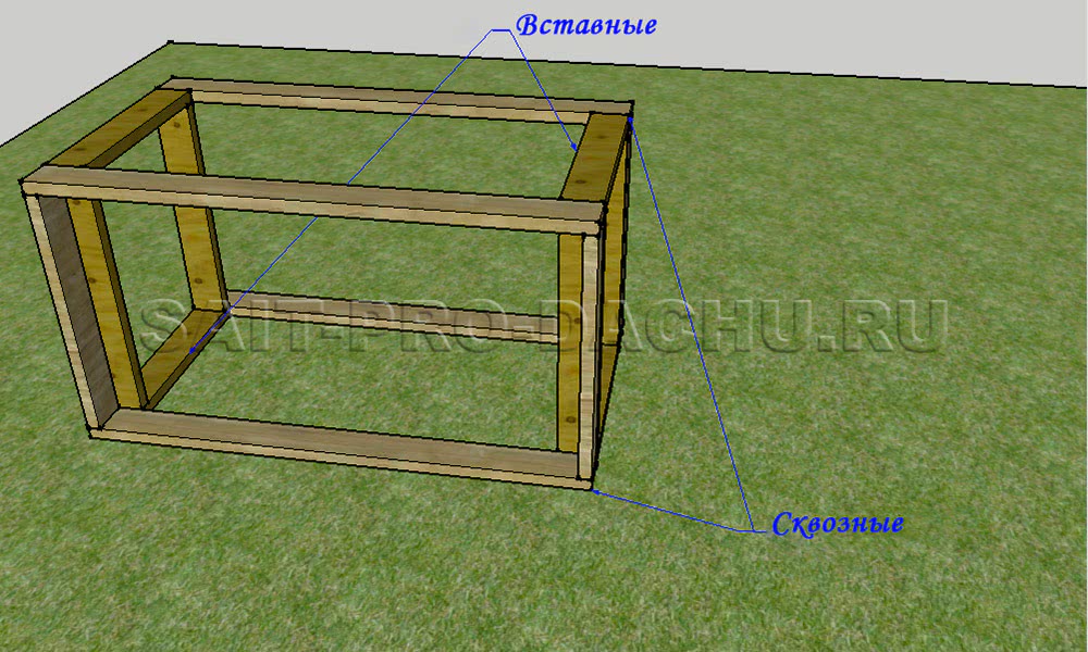 Как вы можете понять, несущей составляющей «каркасника» являются деревянные секции, построенные из досок сечением 150×50 мм. Они делятся на: сквозные и вставные. Схематически это выглядит вот так.
