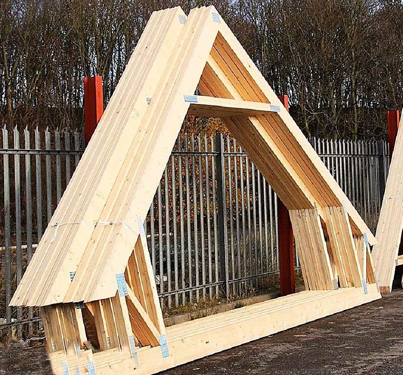 На сегодняшний день существуют уже готовые заготовки стропильной системы и их уже крепят на основание.