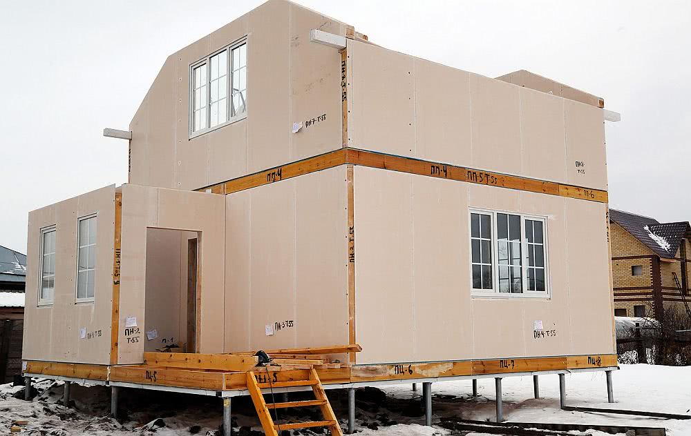 Каркасно-панельные или каркасно-щитовые дома собирают из элементов, подготовленных на заводе. Готовые стены делают с помощью высокоточного оборудования. Строительные фирмы предлагают типовые домокомплекты или индивидуальное проектирование на заказ.
