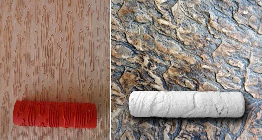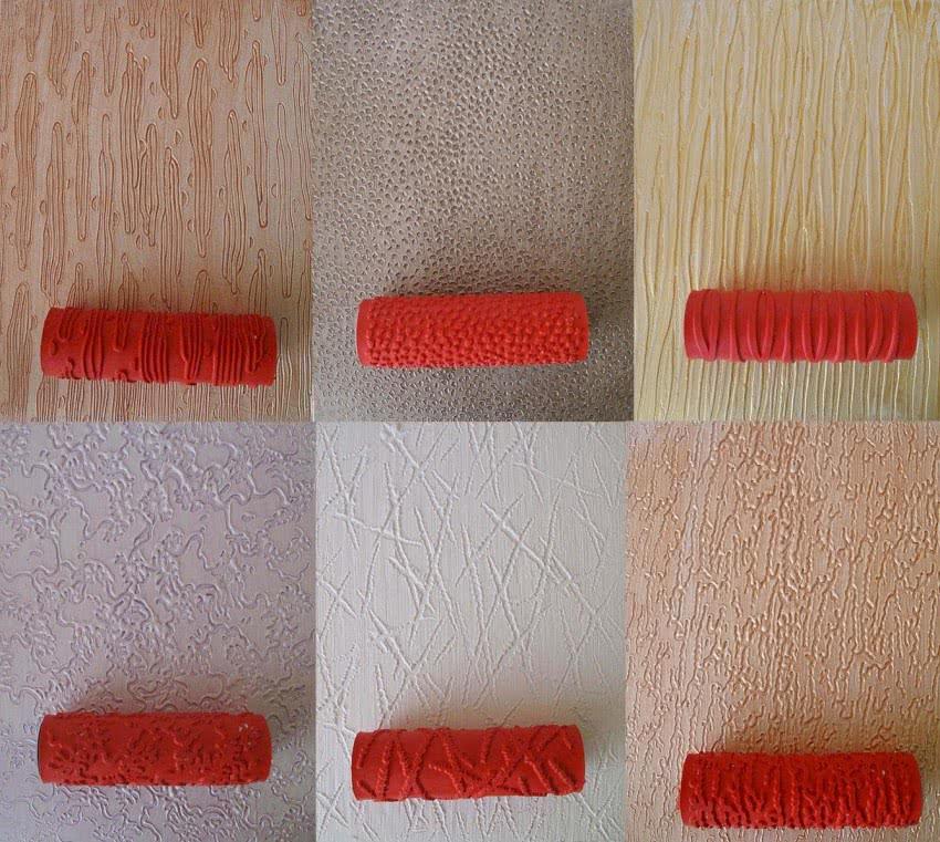 - При помощи валика на поверхности стен можно создать фактурную картину, похожую на велюр. Для начала нужно наносить шпаклевку на небольшой участок. Не давайте ей высохнуть и сразу же приступайте к работе. Четкого рисунка можно добиться, всего лишь раз пройдясь по стене валиком. Чем сильнее степень нажатия инструмента, тем больше неровности будут проявляться на стене. Для большего эффекта валик можно обмотать грубой фактурной тканью. Если «пушистости» оказалось слишком много, ее легко пригладить шпателем.