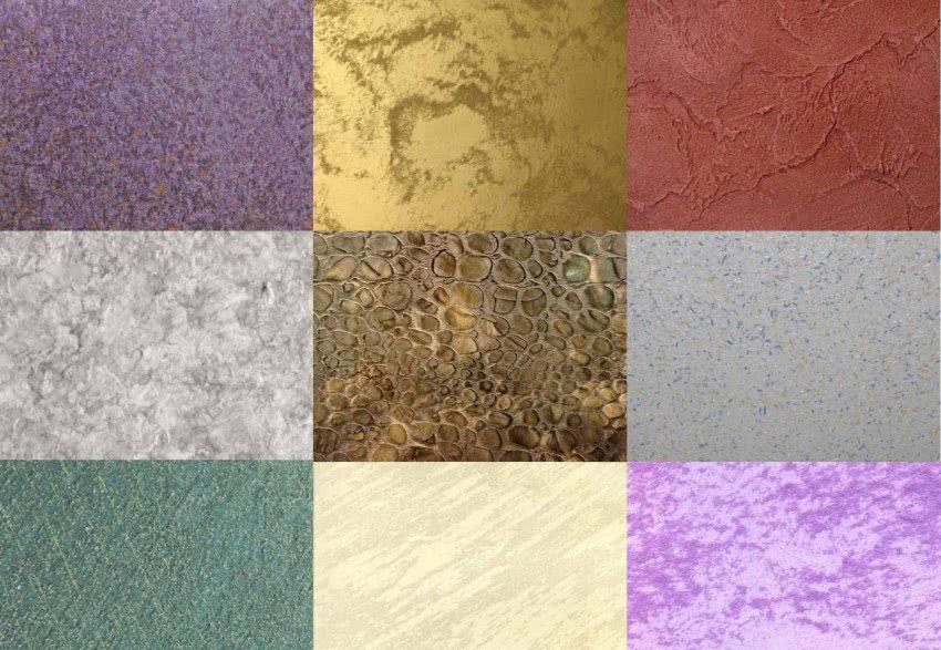 Кроме того, составы классифицируются по декоративному эффекту. Они бывают фактурными, структурными, флоковыми и со специальными эффектами.